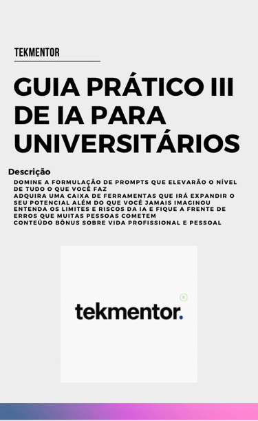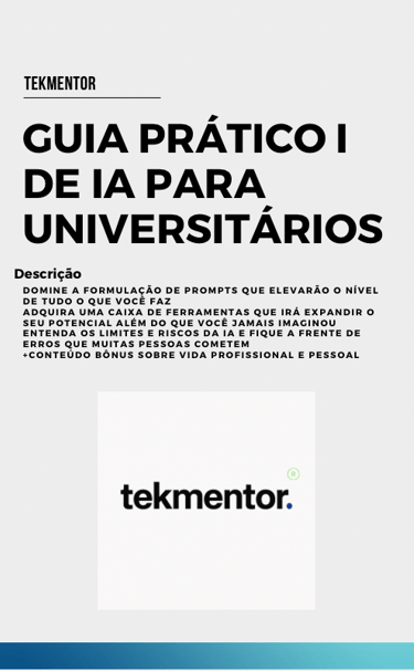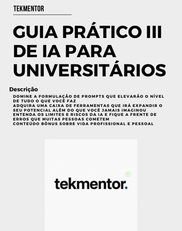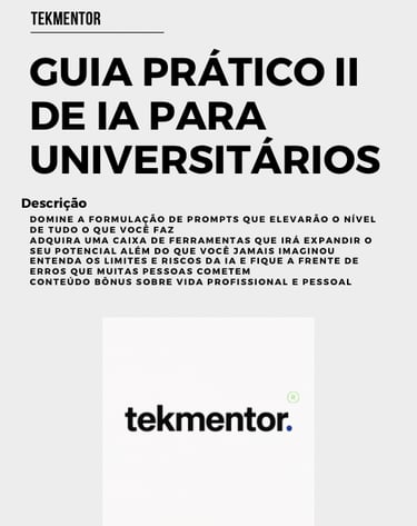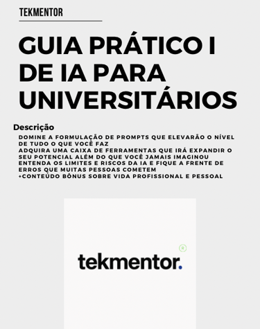 Na Tekmentor, oferecemos um guia de IA para estudantes universitários, facilitando o aprendizado e a aplicação de inteligência artificial em suas jornadas acadêmicas.
